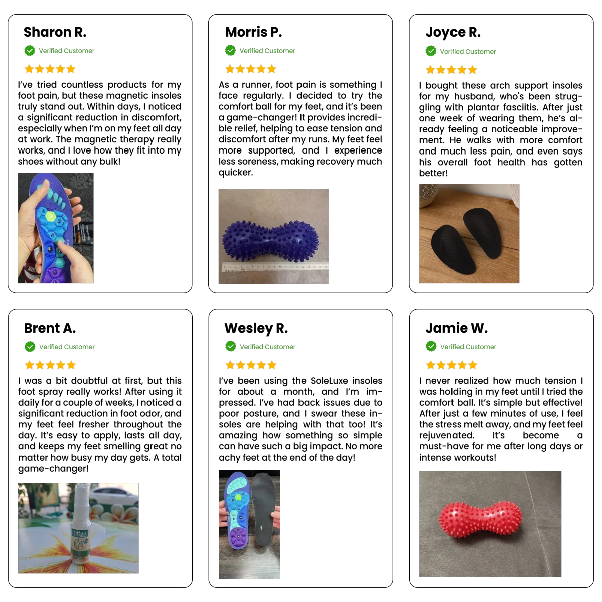 SoleLuxe for daily drainage, ComfortBall for deep relief, and ComfortArch for all-day support.
