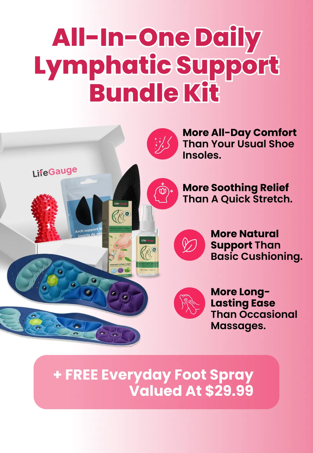 Our bundle brings together daily comfort tools designed to ease pressure, reduce strain, and help feet feel fresher throughout the day.