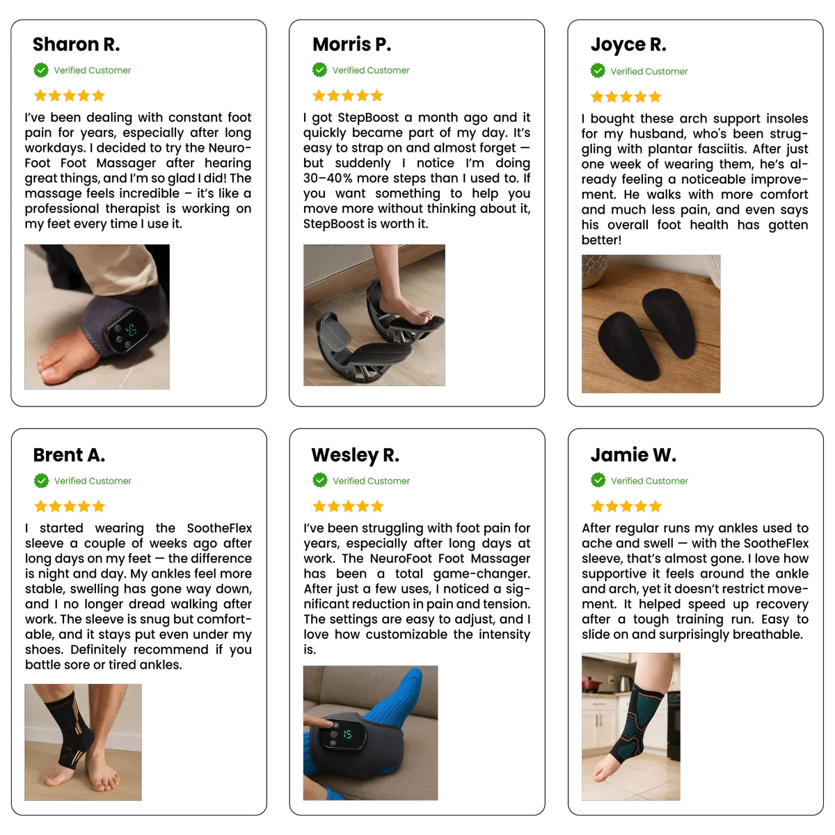 Yes. Neuro Foot and StepBoost are designed to work for a wide range of sizes, while the SootheFlex Sleeve and ComfortArch use flexible, adaptable materials that adjust comfortably to most foot shapes.